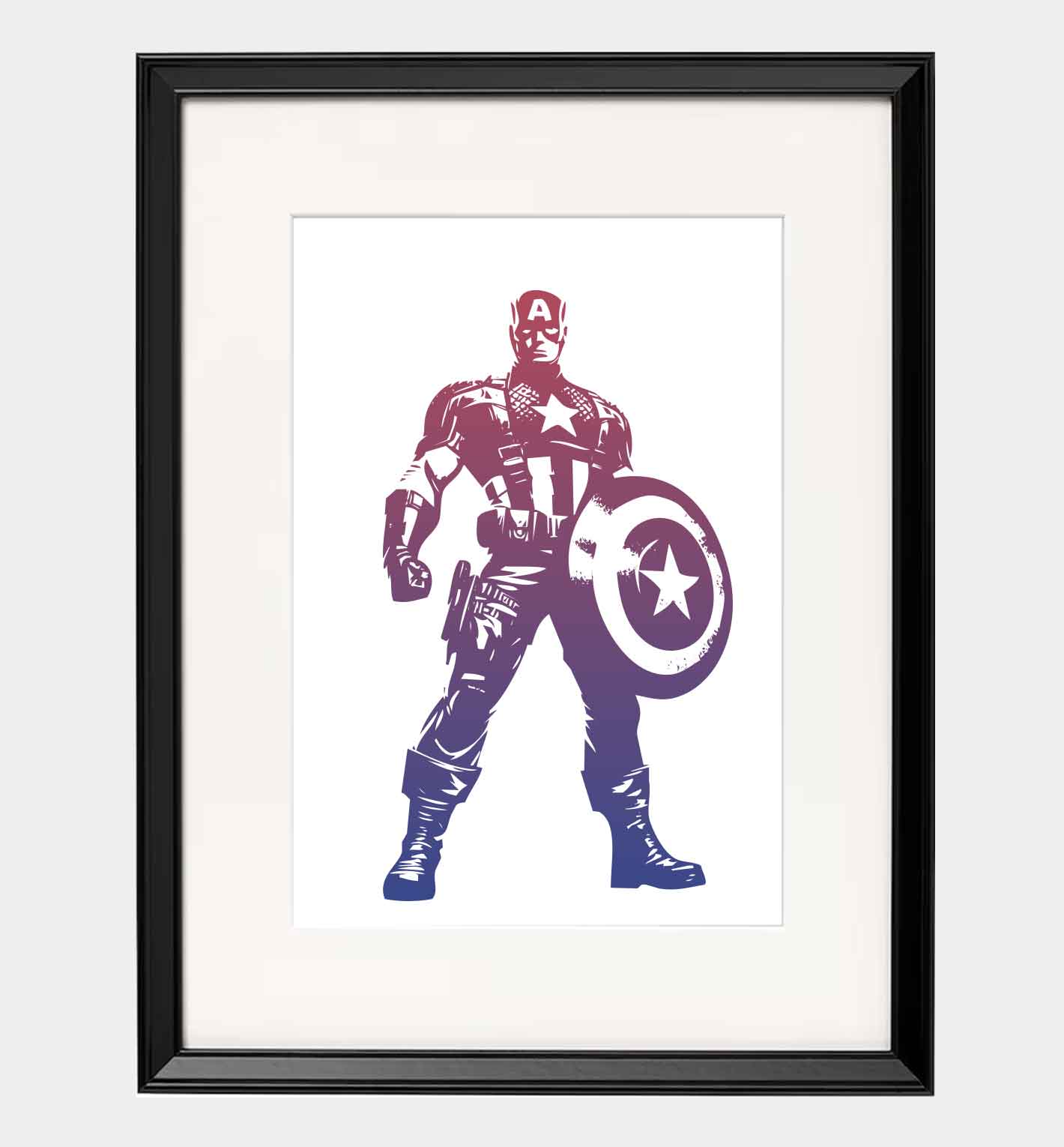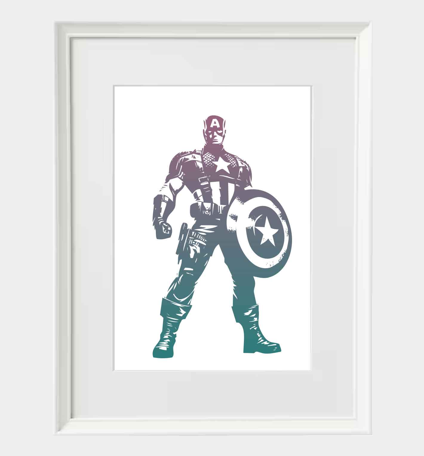Obraz Kapitana Ameryki, ręcznie odbijany na prasie drukarskiej, urzeka bogatą paletą kolorów i subtelnymi gradientami. Grafika przedstawia Steve’a Rogersa w jego charakterystycznym kostiumie i tarczy, gotowego do walki o sprawiedliwość. Ręczna technika druku dodaje każdemu egzemplarzowi unikalny charakter, podkreślając zarówno heroiczny wygląd, jak i symboliczne znaczenie tej postaci.