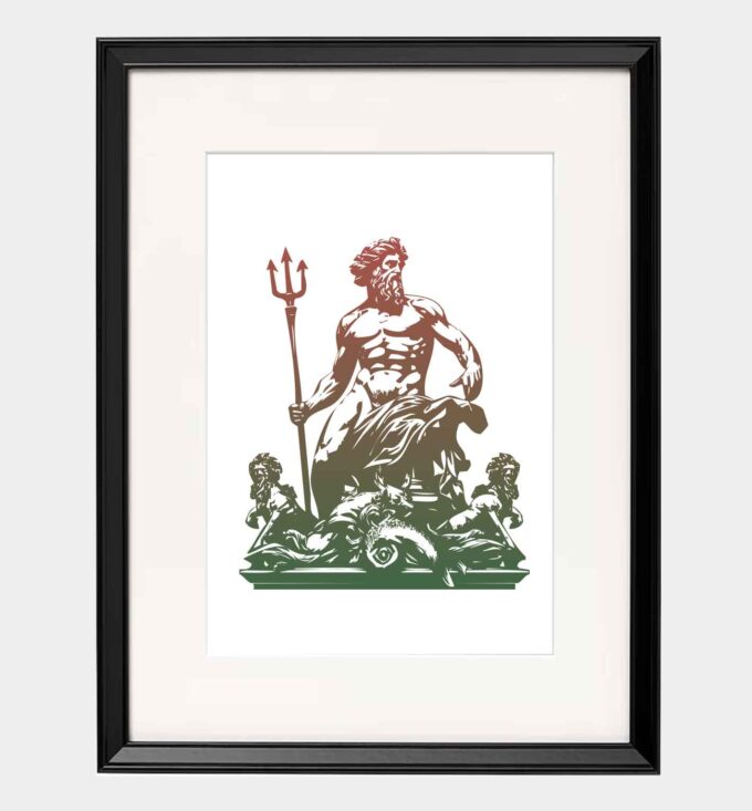 Obraz posągu Neptuna w Bolonii, ręcznie odbijany na prasie drukarskiej, zachwyca różnorodnością kolorów i subtelnymi gradientami. Grafika przedstawia majestatyczną rzeźbę boga mórz, autorstwa Giambologny, z trójzębem i dynamiczną postawą. Ręczna technika druku dodaje każdemu egzemplarzowi unikalny charakter, podkreślając artystyczne detale i historyczne znaczenie tego dzieła.