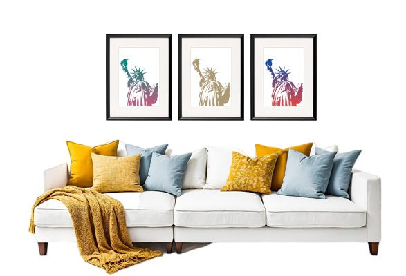 Obraz Statuy Wolności, ręcznie odbijany na prasie drukarskiej, olśniewa różnorodnością kolorów i gradientów. Grafika ukazuje monumentalną rzeźbę w Nowym Jorku, znaną jako symbol wolności i demokracji. Ręczna technika druku podkreśla detale i majestat Statuy, tworząc unikalne dzieło sztuki, które przyciąga wzrok i wywołuje podziw.