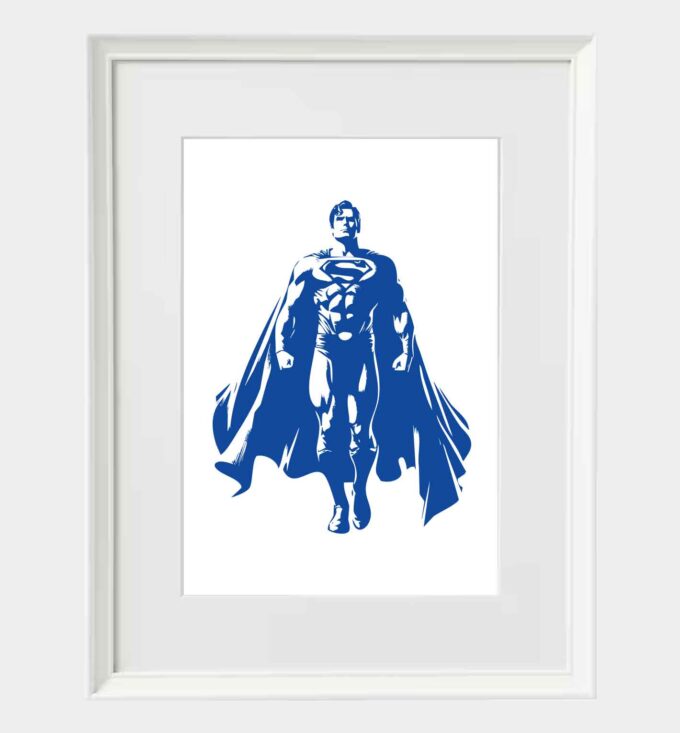 Obraz Supermana, ręcznie odbijany na prasie drukarskiej, olśniewa intensywnymi kolorami i subtelnymi gradientami. Grafika przedstawia Kal-Ela w jego charakterystycznym niebiesko-czerwonym kostiumie, z tarczą S na piersi, unoszącego się w powietrzu. Ręczna technika druku nadaje każdemu egzemplarzowi wyjątkowy charakter, podkreślając majestat i potęgę tej ikonicznej postaci.